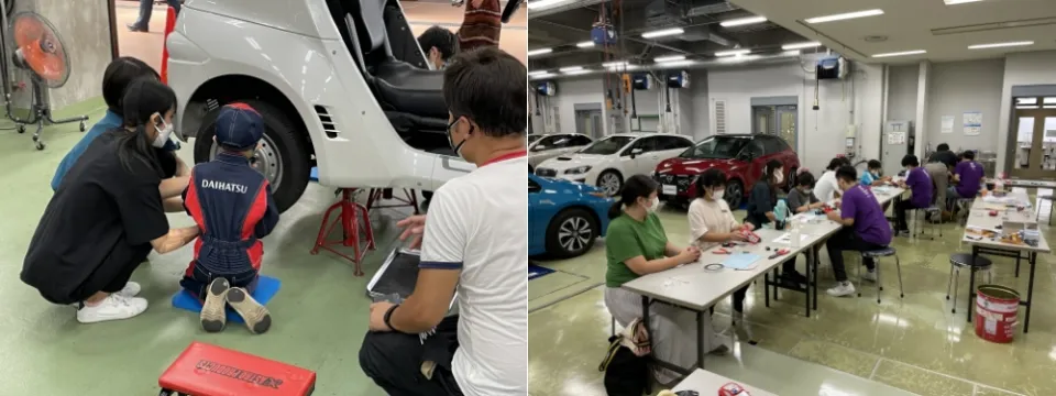 産学連携、地域連携による企業・団体とのコラボレーションをした体験メニューも用意して、よりリアルに学び、プロと同じユニフォームに着替えて作業を行ない、産業界のことや地域企業の強み、特性なども知る機会を提供しました。