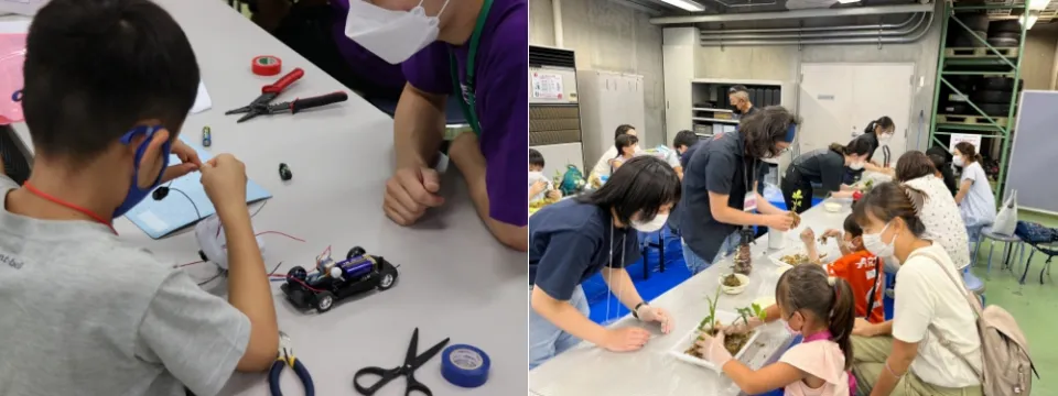 今回、2019年に続き八王子キャンパス全カレッジ(6カレッジ)参加で全20種類の体験メニューの内、テクノロジーカレッジは多岐に渡る11種類の体験メニュー(ものづくり、自動車・モビリティー、建築、ヨーヨーづくり、コマづくり、デジタルものづくり、DNAの実験、こけ玉づくり 他)を用意しました。
