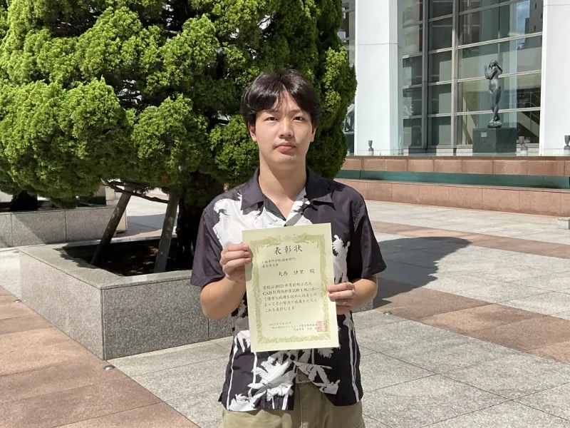 一般社団法人コンピュータ教育振興協会が主催するCAD利用技術者試験において、2022年度前期「3次元CAD利用技術者試験1級」を満点で合格した機械設計科2年生が協会より表彰されました。社会人でも難関の1級を受験者3名中2名が合格し、準1級でも2名が満点で合格しています。機械設計科では、後期試験を受験する学生も今回の合格者に続くよう試験対策を徹底しております。