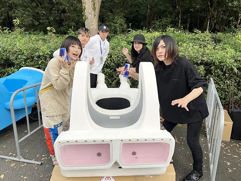 特別枠として、アーティストである岡崎体育、ヤバイTシャツ屋さんとのコラボレーション企画として、アーティスト2組それぞれをイメージしたボックスカートを蒲田校デザイン科の学生たちが作成し、選出されたデザインのカートが実走しました。