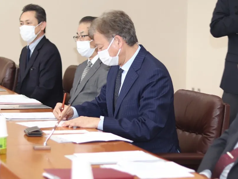 3月14日に八王子キャンパスで行われた締結式では、佼成学園女子中学高等学校の宍戸崇哲学校長と本学園の千葉茂理事長が協定書に署名を行い、今後の教育連携に向けて、両校の教職員の間で活発に意見交換が行われました。
