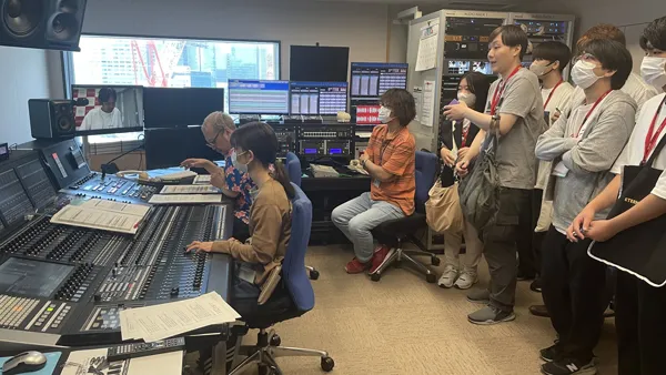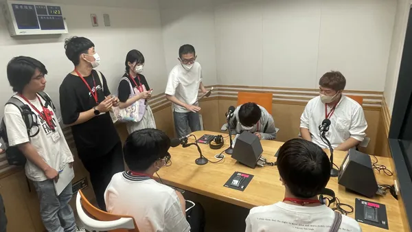 2023年7月22日に、音響分野に興味のある高校生と本科の学生たちを対象とした、スタジオ業界研究ツアーを実施しました。 普段観ることが出来ない、ラジオ局、MAスタジオ、レコーディングスタジオを見学しました。
