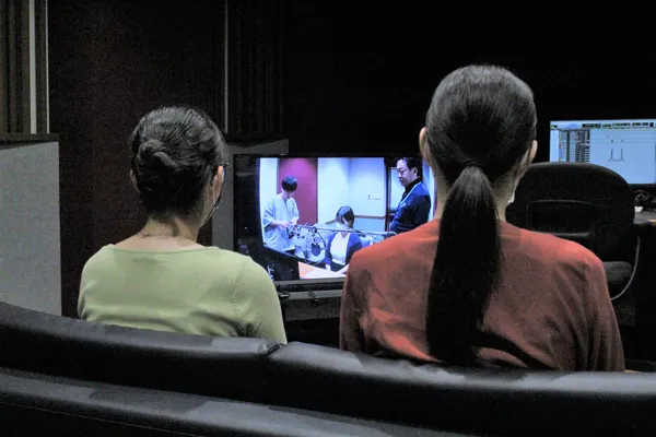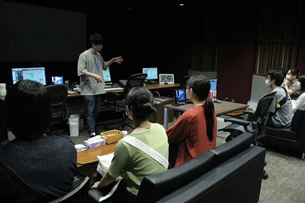 次に向かったのは、竹芝にあるIMAGICA竹芝メディアスタジオ。 この日は、IMAGICA勤務の本科の卒業生が後輩たちにスタジオの隅々まで説明をしてくださいました。すでに世に出ている作品がどのように作られているのかなど、実際の素材を使って作業を拝見させて頂きました。