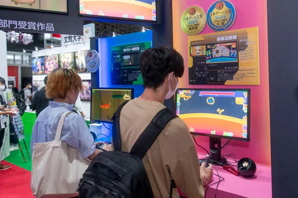 また、9月23日には、日本ゲーム大賞アマチュア部門の発表・表彰式が行われ、日本工学院の学生ゲーム『新年3秒前』が大賞を受賞、『キリカエリア』が優秀賞を受賞、『ガバリー旅行記』と『ハネルバブル』が佳作を受賞しました。受賞が決定すると、日本工学院ブースに出展していたこれら4点のゲームにも多くのお客さんが詰めかけました。