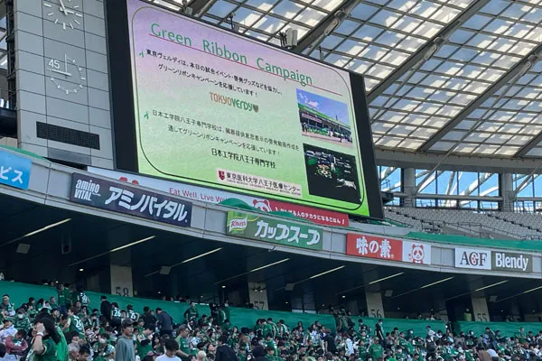 10月22日「東京ヴェルディVSジェフユナイッテッド千葉」の試合会場(味の素スタジアム)にて『グリーンリボンキャンペーン』が開催され、試合会場の大型ビジョンに学生が制作したCM作品が放映されました。