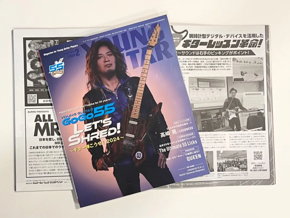 その模様が、株式会社シンコーミュージック・エンタテイメント(https://www.shinko-music.co.jp/)が発行する月刊ギター専門誌「YOUNG GUITAR 2024年2月号(1月10日発売)」にて記事掲載されました。