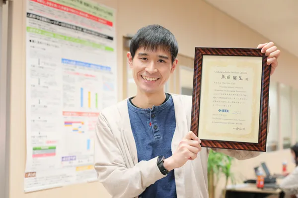 もともと在学中に学外での研究発表を行ってみたいという思いがあり、AIシステム科の小林先生に誘われことがきっかけで参加しました。初めての学外での発表で、不安と期待が入り交じっての参加だったので、賞をいただけるとは全く思ってもいませんでしたが、一生懸命取り組んだ甲斐があり、「Undergraduate Student Award」を受賞することができました。