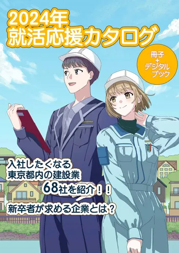 日本工学院八王子専門学校は、建設系業界紙の株式会社建通新聞社(東京本社:東京都港区、代表取締役社長 片方賢也氏)と2023年12月から産学連携にて、首都圏で建設系を学んでいる学生向け応援カタログ第3弾『就活応援カタログ(冊子+デジタルブック)』の制作・発行に当たり、表紙デザインを専攻が異なる分野の学生(マンガ・アニメーション科四年制、マンガ・アニメーション科、建築学科)8名でプロジェクトを進め、10作品の中から表紙に1点、裏表紙前に1点の計2点の学生作品を採用いただきました。中面には全応募者の作品も掲出されています。