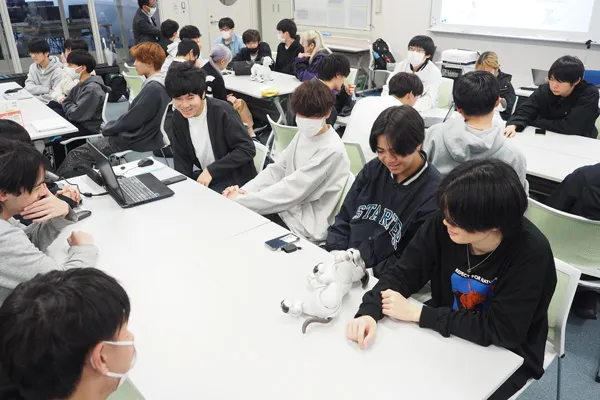 ITスペシャリスト科では2023年度より、ソニーのエンタテインメントロボット「aibo」をプログラミング教育、IoT教育用の教材として正式導入しており、昨年に引き続き今年度も「aibo」開発チームにご協力いただき、特別講座を実施していただきました。