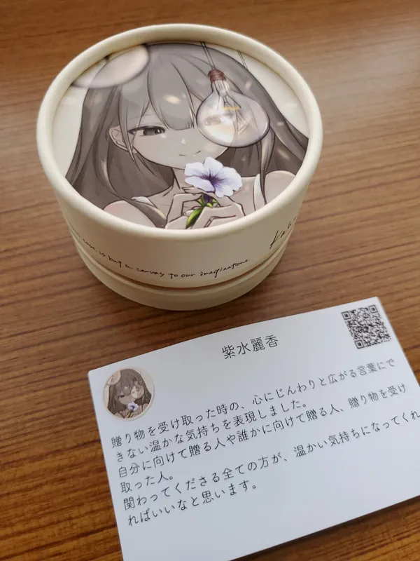 授業課題で取り組んだkahogoプロジェクト(アートと石鹸のコラボ商品)にて、マンガ・アニメーション科四年制2年生の紫水麗香さん(アーティストネーム)の作品が採用されました。