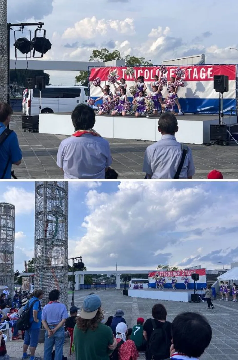 ダンスパフォーマンス科公式チアのTiaraが昨年にも引き続き、横浜F・マリノスのホームゲーム戦で、日産スタジアムの東ゲートに設置されたトリコロールランドステージにてイベント出演しました。今回、1年生が加入してからチームとしては初めての外部イベントということで、初出演した学生たちも一生懸命頑張っていました。新生Tiaraとしてこれからも様々なイベントを盛り上げていきますので応援お願いします!