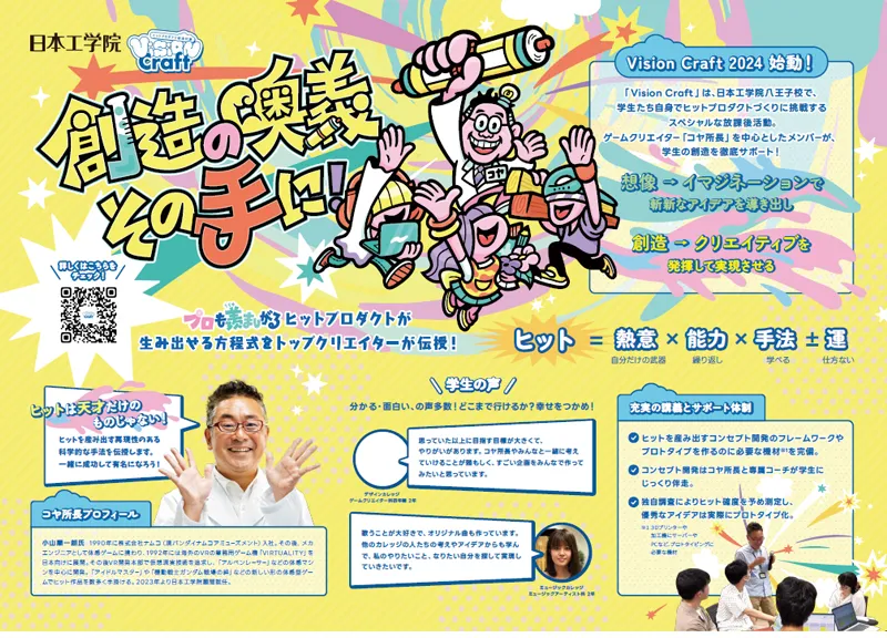 元バンダイナムコのヒットメーカー「コヤ所⻑」こと⼩⼭順⼀朗が⽇本⼯学院の学⽣たちと進めてきたプロジェクト“Vision Craft”から⽣み出された20以上のアイデアがいよいよ解禁︕