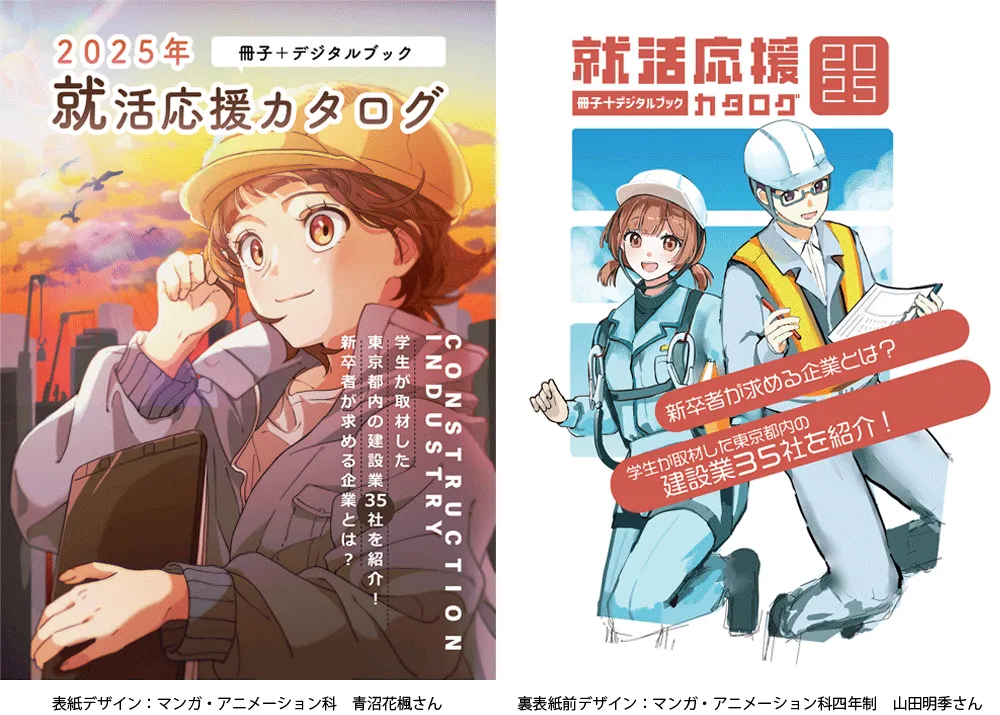 日本工学院八王子専門学校は、建設系業界紙の株式会社建通新聞社(東京本社:東京都港区、代表取締役社長 片方賢也氏)と2023年12月から産学連携をはかり、首都圏で建設系を学んでいる学生向け応援カタログの制作に協力しています。この度第4弾『就活応援カタログ(冊子+デジタルブック)』の制作・発行に当たり、表紙デザインをマンガ・アニメーション科四年制、マンガ・アニメーション科でプロジェクトを進め、約70作品の中から表紙に1点、裏表紙前に1点の計2点の学生作品を採用いただきました。中面には全応募者の作品も掲出されています。