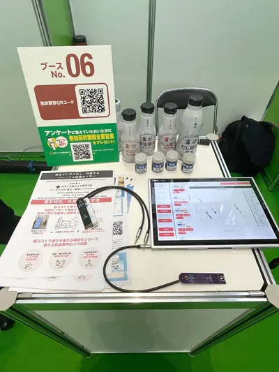 本校の研究発表テーマは「味をデジタル化し、共有するパーソナル味覚センサー」。ブースでは、いつでも、どこでも、誰でも、手軽に味を数値化できるパーソナル味覚センサーとして開発した「DigiTaste」の紹介、説明、実演を行いました。