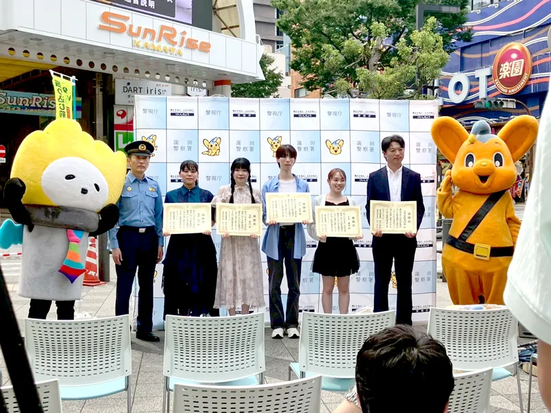 「特殊詐欺被害撲滅キャンペーン」のための啓発ナレーションを声優・演劇科の学生4名が担当し、警視庁蒲田警察署より駅前広場にて感謝状をいただきました。