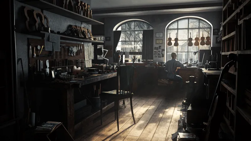 松山さんは、「クレモナに住むヴァイオリン職人のおじいちゃんです。儚げな演出を意識して制作しました。」とコメントしています。