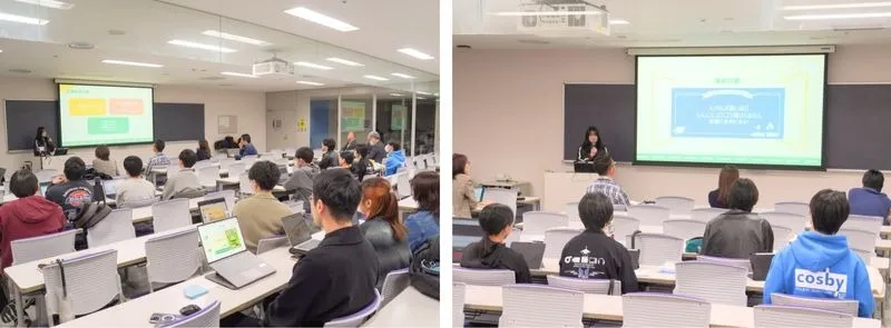 今回の共同プロジェクトでは、「ゼロカーボン社会に向けた行動変容を促すコンテンツの企画」をテーマに、学生たちの自由な発想と企業の専門知識を融合。2025 年5 月からスタートしたゼミでは、関西電力「CQ BANK」の担当者が講義を行い、学生たちは気候変動の現状や世界的な取り組みについて学んできました。その後も学生たちは活発な議論を通して、社会課題を“共感ベース”で解決するアイデアを模索。3つのチームに分かれて活動を進め、10月にはそれぞれのチームが「CQ BANK」の担当者へ向けて中間発表を行いました。