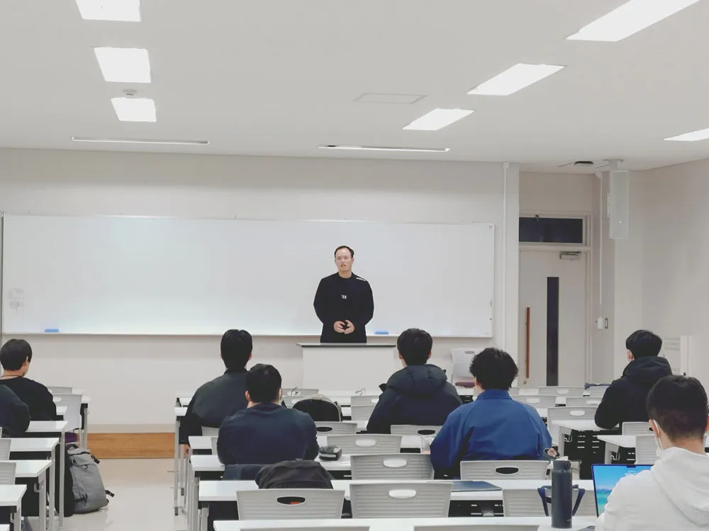 Jリーグのフィジカルコーチになるまでの歩み、資格取得の重要性、在学中にやっておきべきことなどをお話しいただき、スポーツチームのトレーナーをめざす学生たちに大きな刺激となりました。