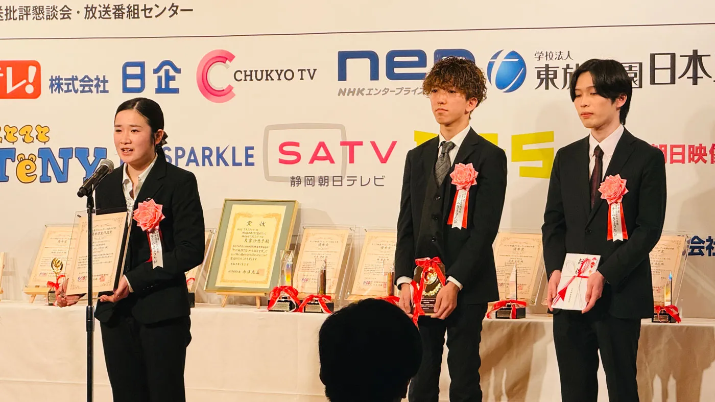 1月21日(水)にANAインターコンチネンタルホテル東京で行われた授賞式には、本作で総合演出を務めた松山かえでさん、ディレクターの杉江朋也さん、編集を担当した橋浦稜介さんら卒業生たちが登壇をしました。