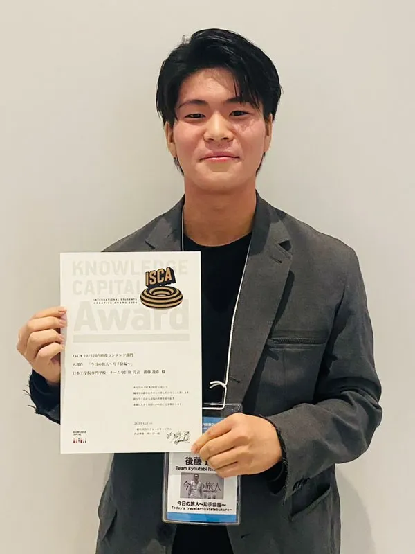 12月5日(金)に大阪で行われた授賞式には、本作で監督を務めた後藤逸希さんが出席。受賞スピーチでは、「本校で学ぶことができた喜び」や「共に作品を制作した仲間たちへの感謝」を、自身の言葉で熱く語ってくれました。