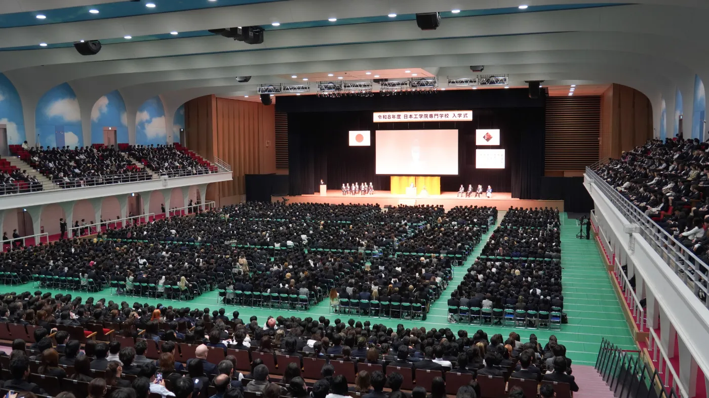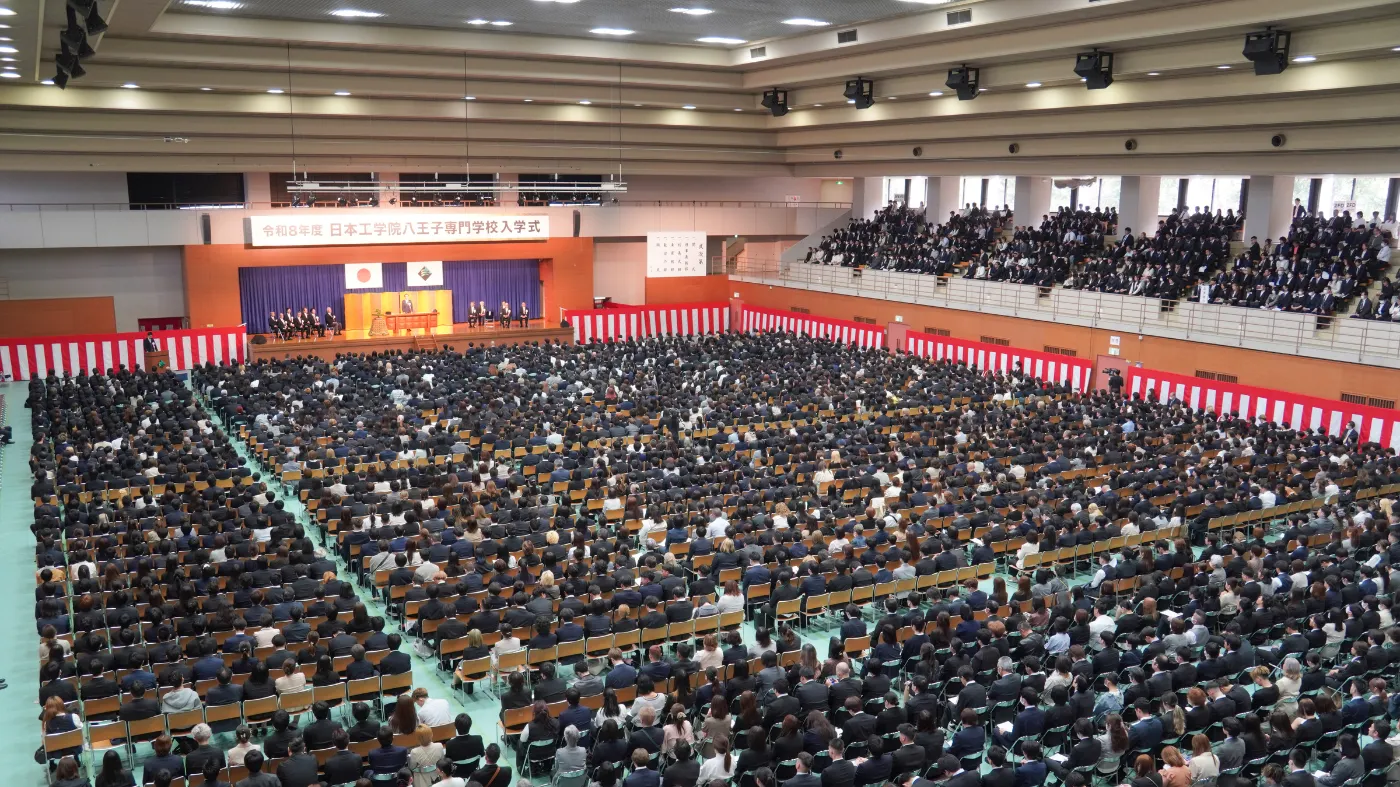 日本工学院八王子専門学校(八王子校)では4月6日に体育館アリーナにて、日本工学院専門学校(蒲田校)では4月7日に日本工学院アリーナにて、それぞれ令和8年度入学式を挙行しました。