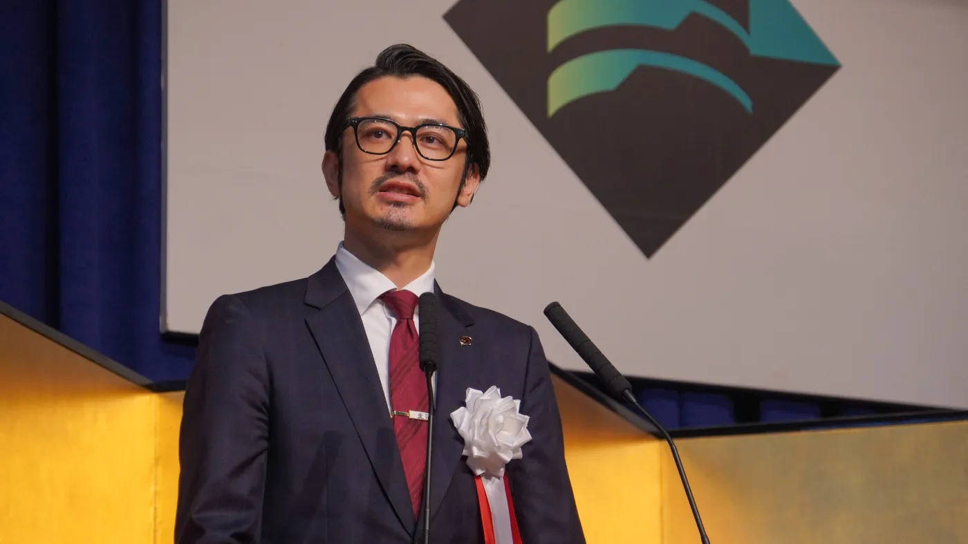 千葉茂理事長からの挨拶、中村英詞校長からの式辞に続き、八王子校では、八王子市長 初宿和夫様(代読:副市長 植原康浩様)と、プロバスケットボールB.LEAGUEのB1に所属する川崎ブレイブサンダースの代表取締役社長 川崎渉様から祝辞を賜りました。本校では今年度より、川崎ブレイブサンダースと提携したバスケットボールコースを新たに設置しております。川崎様からは、川崎ブレイブサンダースが大事にしている哲学を交えながら、新入生を鼓舞する感動的なメッセージをいただきました。