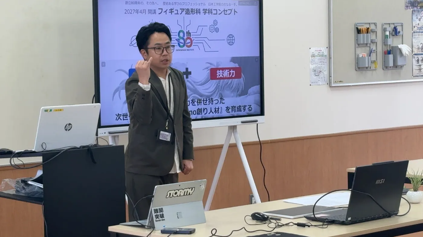 フィギュア造形科では、在学中の学ぶ内容をはじめ、卒業後に業界でどのように活躍していくのかまで具体的にイメージできるよう学科説明を行っております。初めて分野に触れる方でも理解しやすいよう、制作の流れや現場で求められるスキルについても丁寧にご紹介しています。