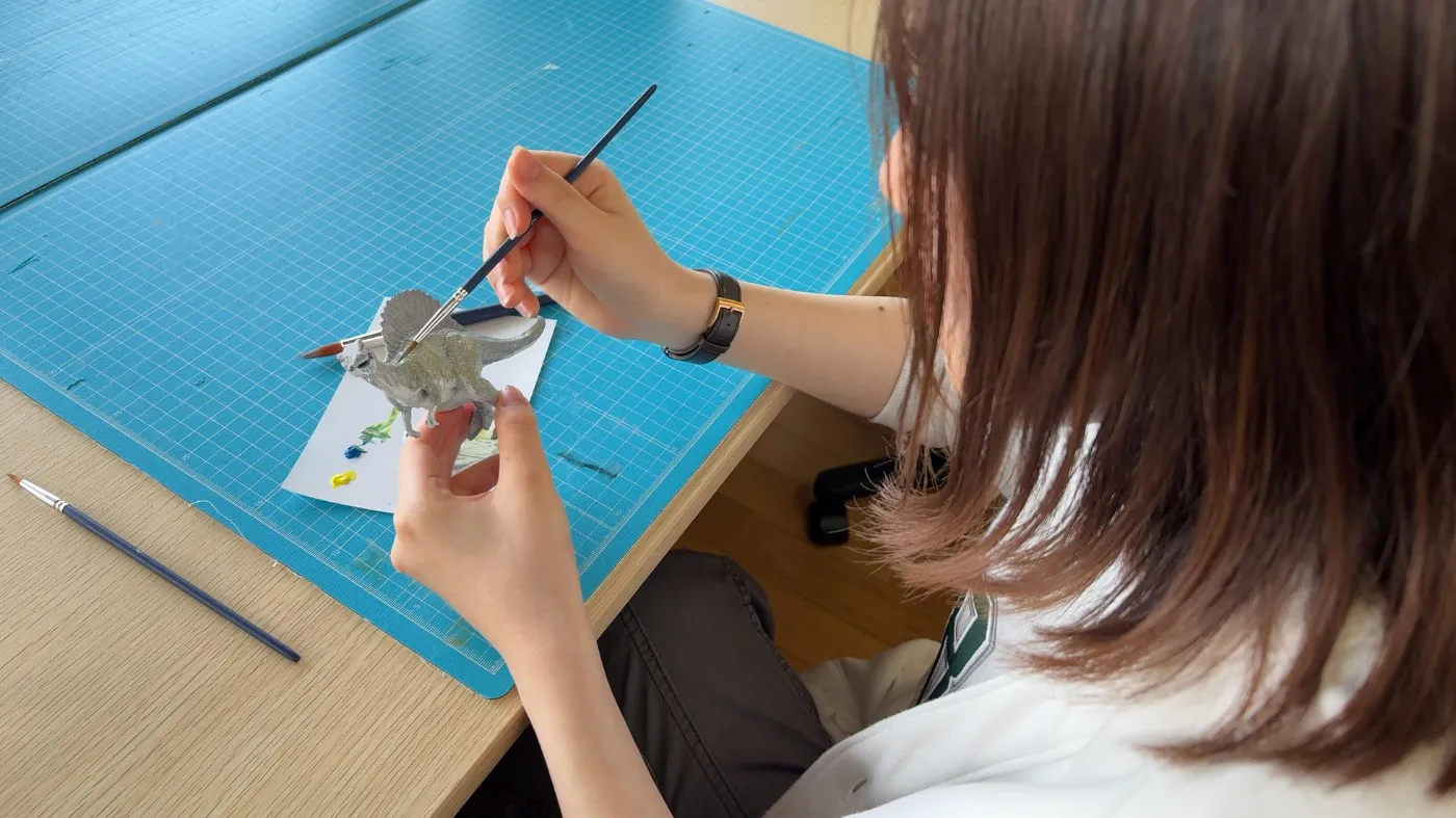 授業体験では、参加者の写真をもとに3Dプリンターで立体出力する最新技術の体験や、恐竜モデルに色付けを行うフィニッシング作業など、実際の制作工程の一部を楽しみながら体験していただきました。完成した作品を手にすることで、ものづくりの面白さや達成感を実感できるプログラムとなっています。