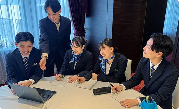 自らサービスを発想し、お客様に提供できるホテルスタッフ(ホテリエ)を育成するコースです。星野リゾートの接客ノウハウをベースに、お客様との円滑なコミュニケーションに必要な知識やスキルを幅広く学びます。