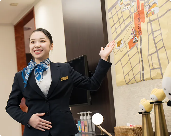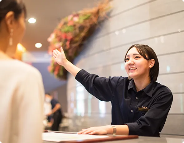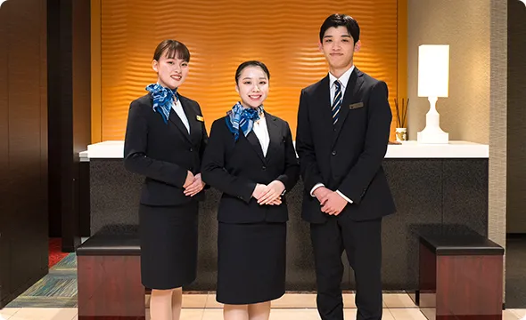 フロント、コンシェルジュ、ベルスタッフ、ドアスタッフ、客室サービス、レストラン・宴会サービス、ホテルイベントスタッフ、ブライダルスタッフ、企画・マーケティング、施設管理 など