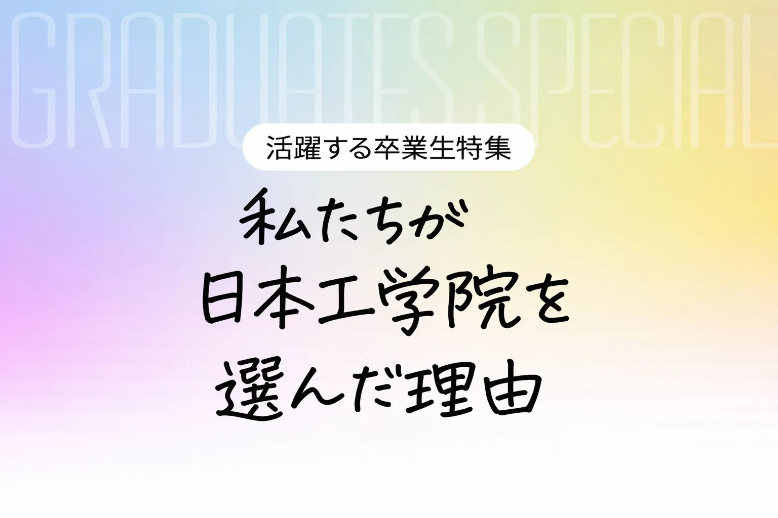 多彩な専門分野を学ぶ学生や業界の最先端で活躍する卒業生の声を通じて、日本工学院の学校生活や学びの魅力をお伝えします。日本工学院での学びがどのように夢や目標へつながっているのか、リアルな声を通じて感じていただけます。未来を切り開く第一歩を踏み出したい方に、ぜひご覧いただきたいメッセージです!